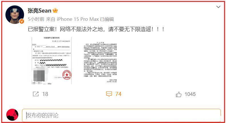 11月26日下午,张亮发文“已报警立案!网络不是法外之地,请不要无下限造谣!!!”并配上了2张图片。