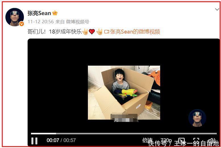 张亮不仅转发了天天庆生的动态,还特意发布了一条视频为儿子庆生。
