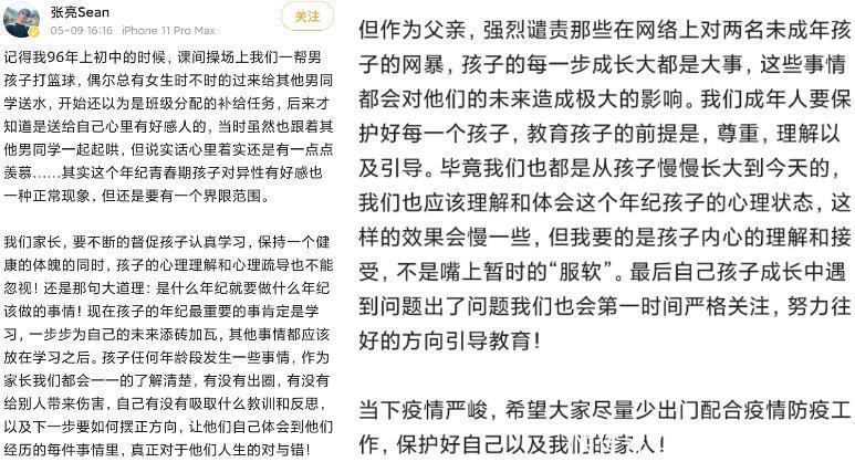 对于张亮的回应,大部分网友都表示理解,对于未成年的孩子的确需要进行正确的引导,于是天天疑似早恋的风波就这样平息了。